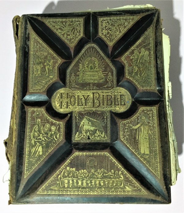 In May 2021 I was contacted out of the blue by a person who 30 years ago had purchased an old bible from a collectibles shop in Queensland in a state of disrepair. She recently inspected it again, noticing the inscriptions and very generously sent me some photos of it.