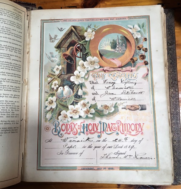 It was the bible presented to Henry and Jane on their wedding day at Sandy Creek on 25 September 1889!