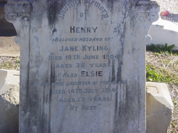 Elsie had suffered a severe bout of gastritis resulting in convulsions and heart failure. Her brother William Henry Kyling was the informant on the death certificate. She was buried with Henry and her name can be seen on the headstone above.