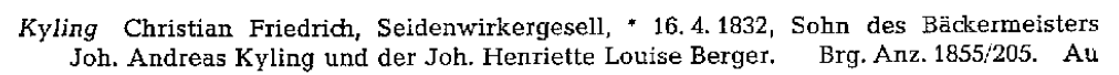 b. 16 Apr 1832 Hohegeiß, Blankenberg, State of Bruzwig, Germany ; parents Johann Andreas KYLING & Henriette Christiane HARTUNG