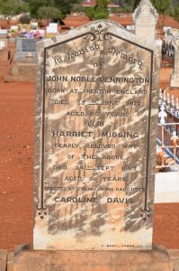 Headstone of John Noble Pennington & Harriet Missing at Cobar Cemetery